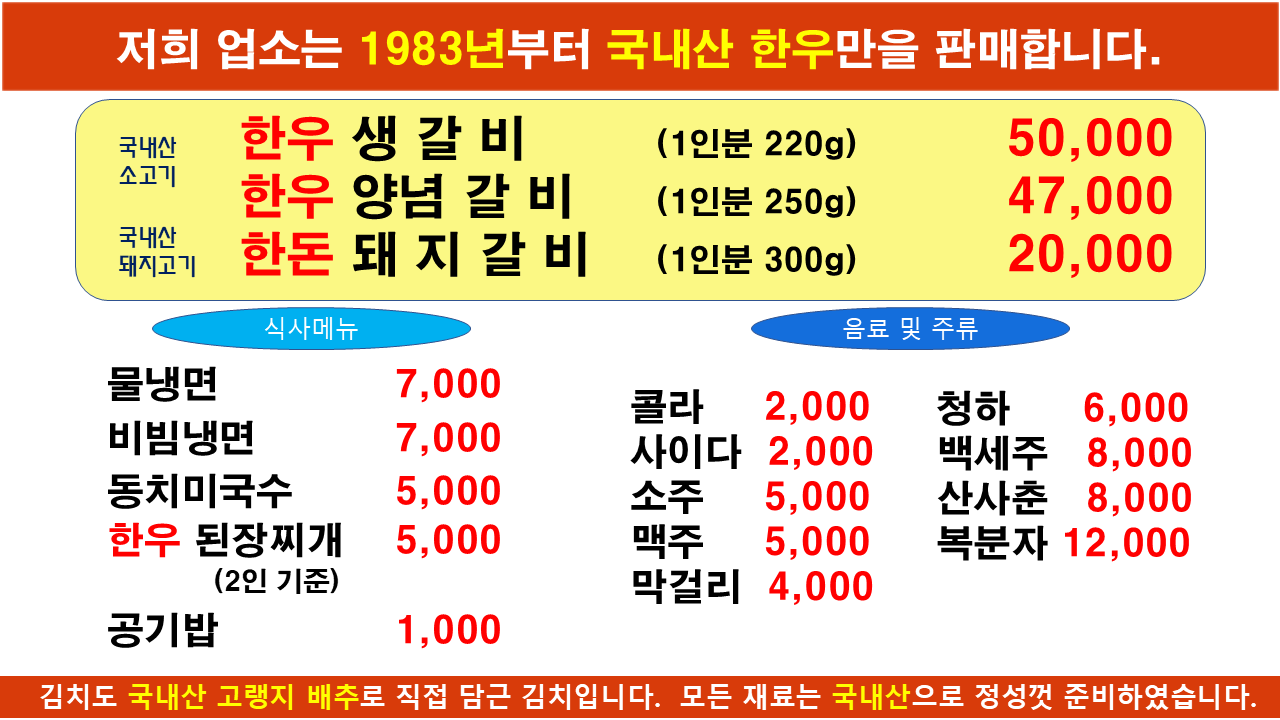 오직 국내산 정성껏 준비한 재료